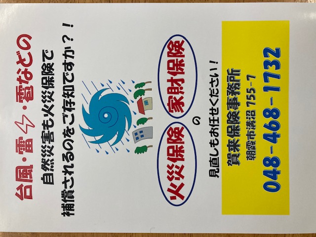弊社では自動車保険はもちろん、実は火災保険も承っております!ご自宅に火災保険をかけていると思いますが、その補償内容をわかっていない方が多いんです(>_<) 知らないと損をすることもあります💦火災保険証券をお持ちの上、ご相談ください(*^-^*)わかりやすくご説明、ご提案させていただきます♪担当:光井('◇')ゞ